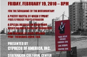 On February 19th 2010 Theoharis David was the guest speaker at a special event dedicated to the coastal city of Famagusta in Cyprus. His lecture titled "Famagusta: Remembrance and Thoughts for its Future" followed a film presentation and poetry recital by other Cypriot artists. The event took place at the Stathakion Cultural Center in Astoria, New York. For more information please visit http://aktina.org/events.html