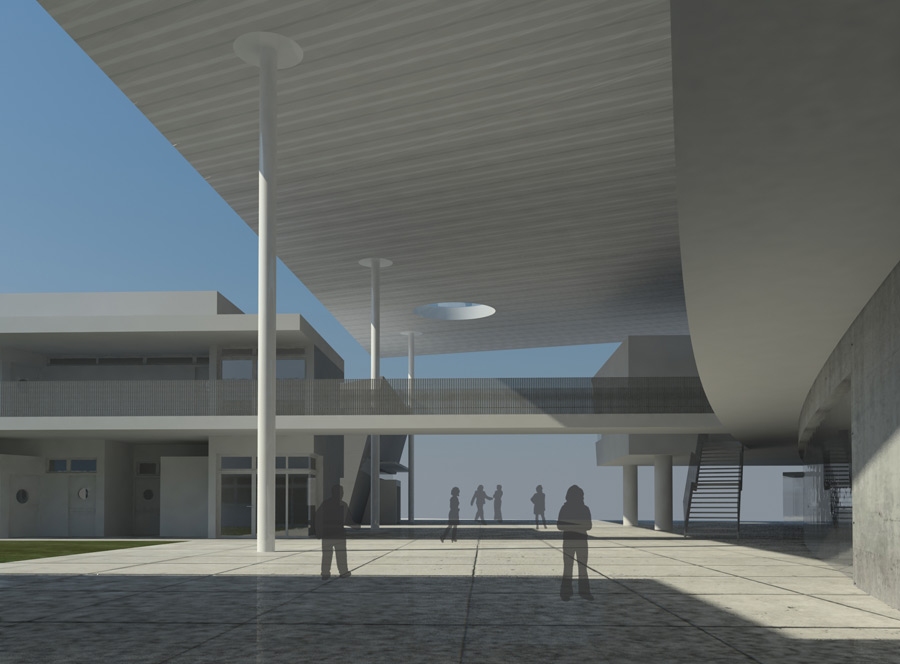 The architecture of a school should function not only as a building with classrooms and labs etc., but also as a place of communication between students, teachers and visitors, generating a sense of place, an educational community.