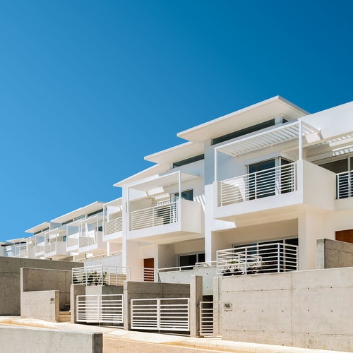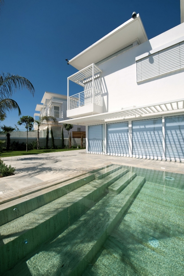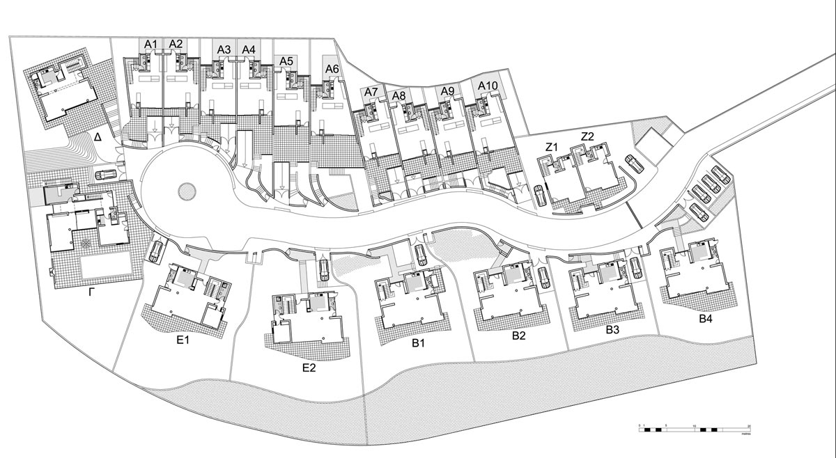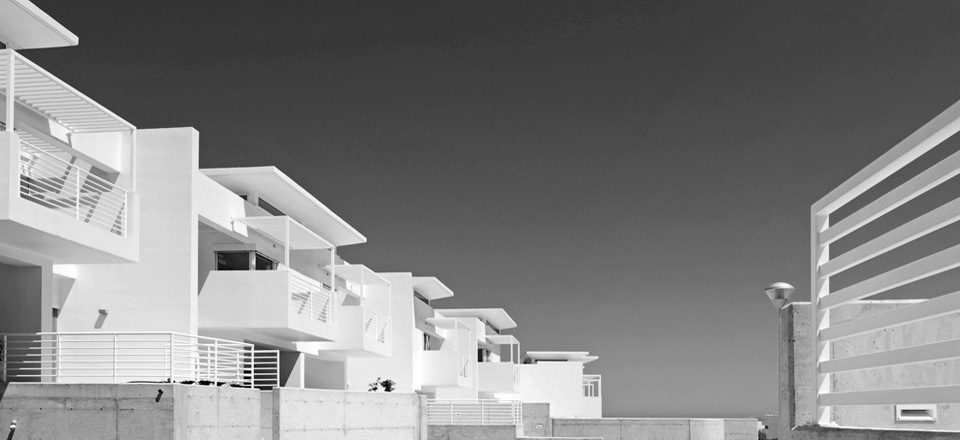 A Ground condition defined by the not too distant horizon of the Mediterranean Sea, the intense blue of the Cypriot sky and ancient rock out cropping and stone quarries that inhabited the site all combined to shape an idea about this vacation residential complex of 18 living units. A unique relationship to ground is generated not only by the expected framing of the distant ground but by allowing a symbiotic relationship between built form and existing rock formations.