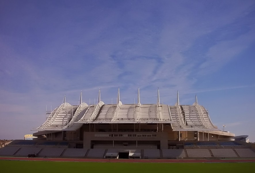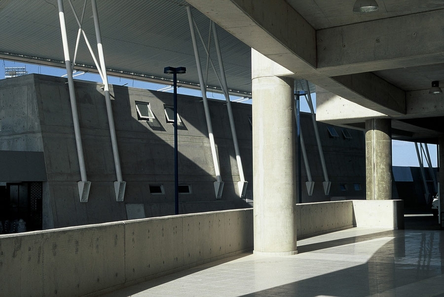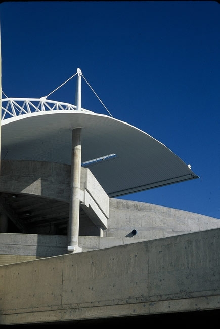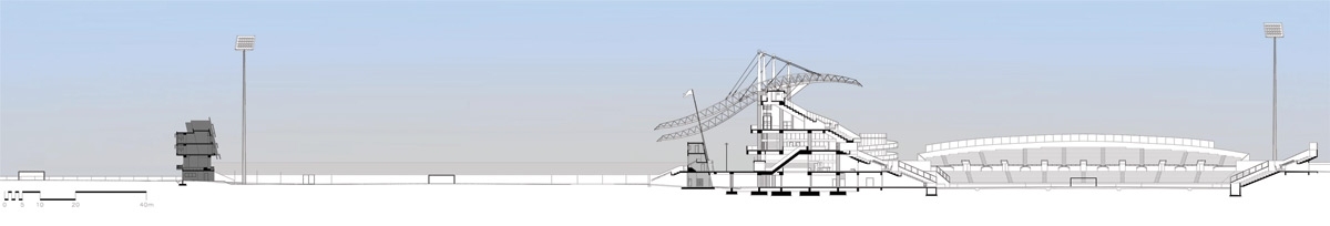 Recollections of modernist Art contributed subconsciously to shape the conceptual idea for this 30,000 seat soccer stadium supported by circulation elements and combined with a 6,000 seat track and field stadium. The architectural footprint of this international competition entry winner could be attributed to a certain visual and compositional order evident in examples of abstract art as precedent. This footprint extruded into a section and capped by a suspended steel canopy, is juxtaposed against the distant ground of a mountain range, and read as a symbol realized from a synthesis of multiple themes.