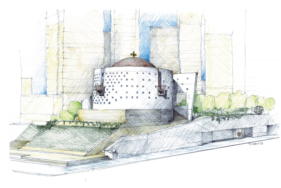 The idea is completed as a proposal inspired by works of art reinterpreted, which both envelops and opens up to all who may wish to enter this place of worship, prayer, solitude and peace.